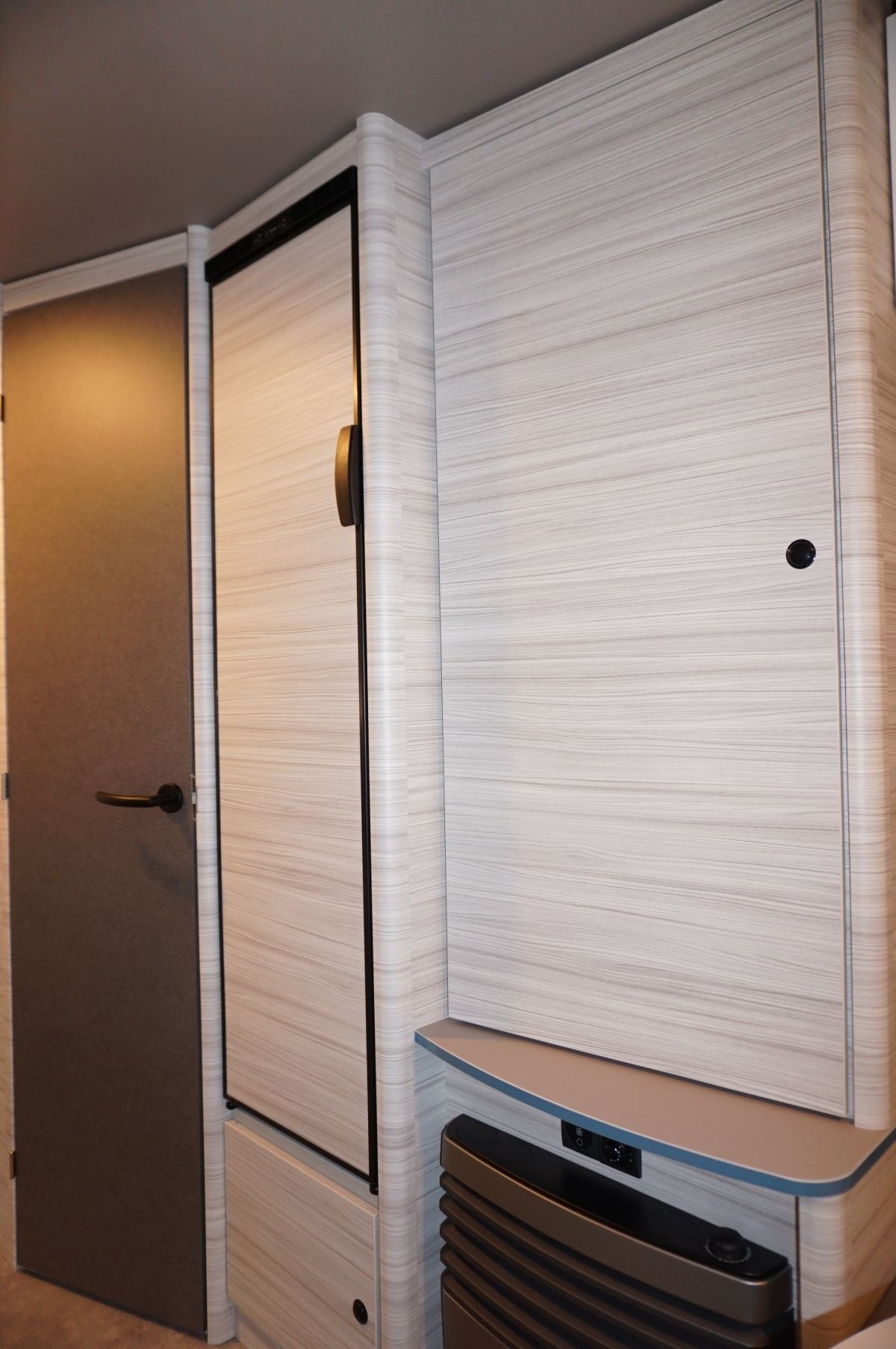 Een afsluitbare slaapruimte met een stapelbed – perfect voor kinderen of gasten. Het onderste bed is wegklapbaar en kan worden omgevormd tot een ruime garage voor fietsen of extra bagage.