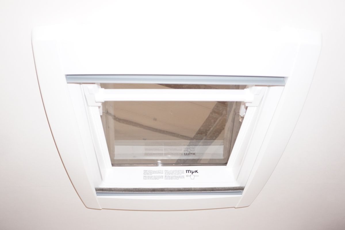Comfortabel dwars tweepersoonsbed met ruime bergruimte eronder, bereikbaar van binnenuit én via het serviceluik.