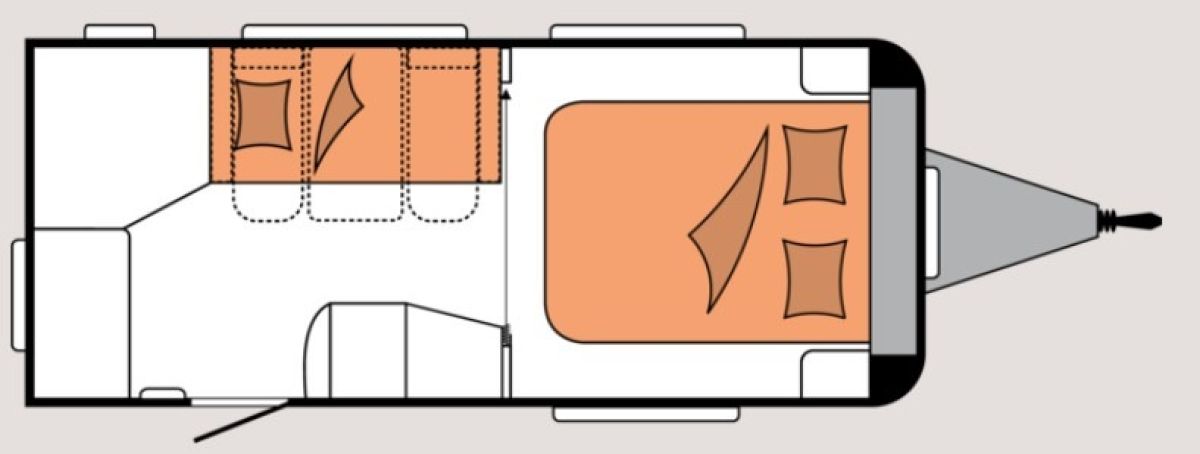 Splinternieuwe compacte caravan voor 3 personen – met treinzit en queensbed