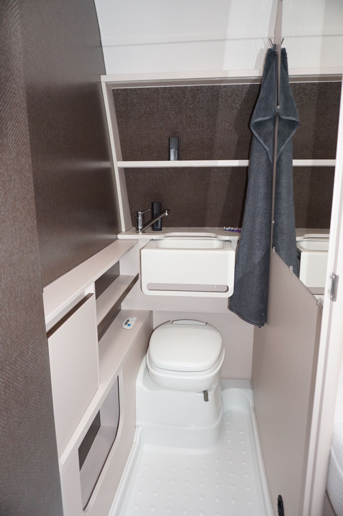 Aparte, praktische badkamer met vast toilet – ideaal voor comfort onderweg, waar je ook bent.