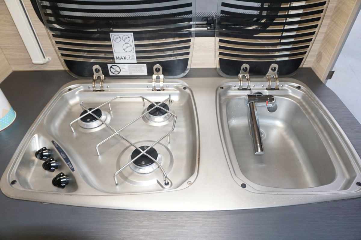 Voorzien van een 3-pits gasfornuis, ruime koelkast en praktische kastruimte – alles wat je nodig hebt om onderweg te koken.