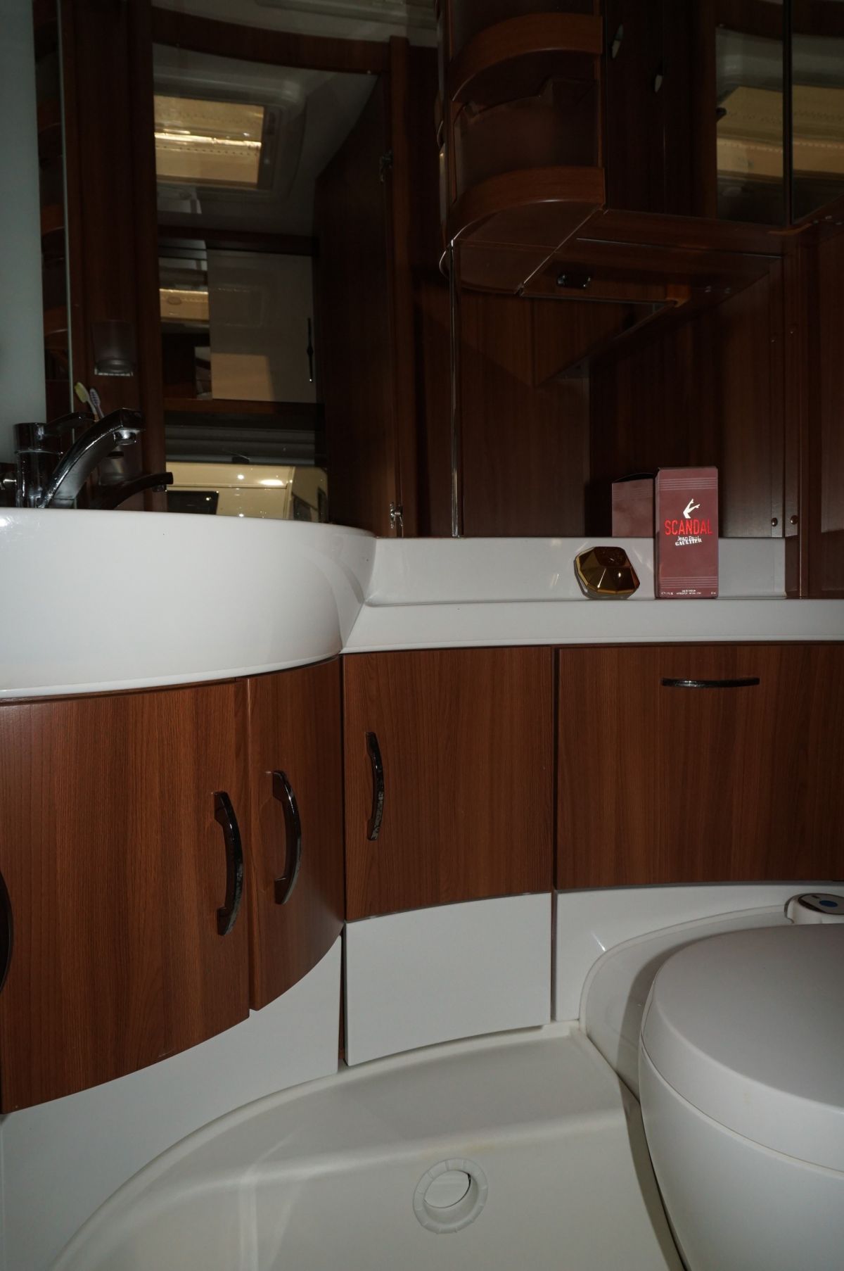 Naast het bed ligt een aparte toiletruimte met vast toilet – praktisch en comfortabel tijdens elke reis.