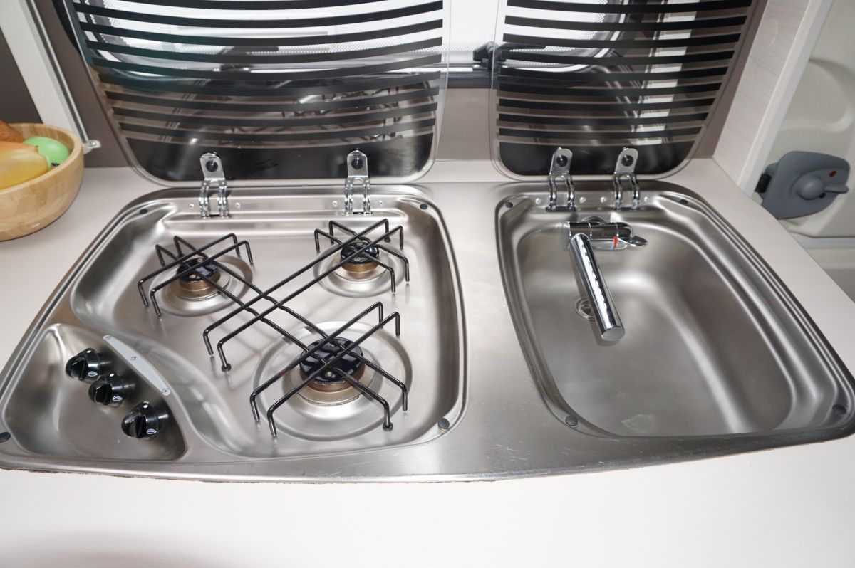 Voorzien van een 3-pits gasfornuis, een zeer ruime ladekoelkast en voldoende kastruimte voor al je kookbenodigdheden.