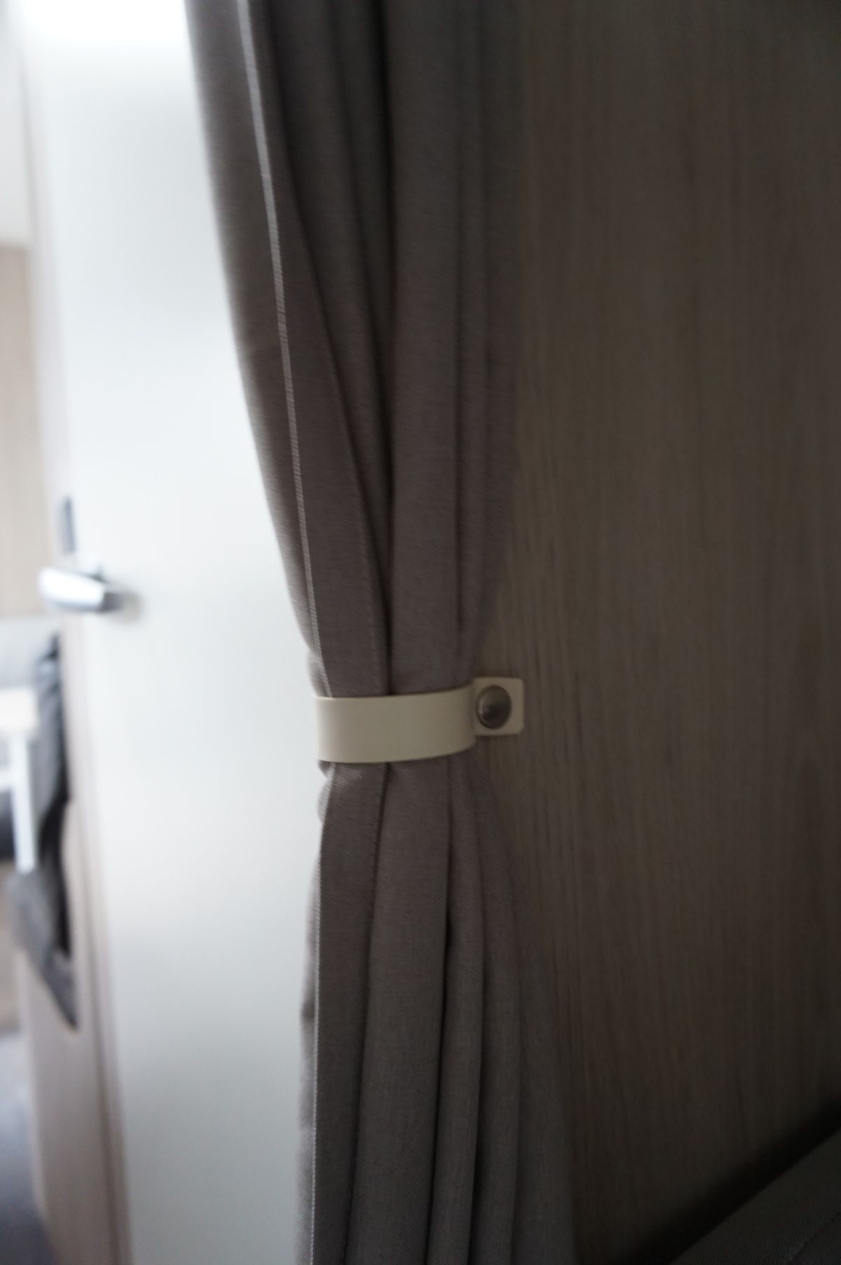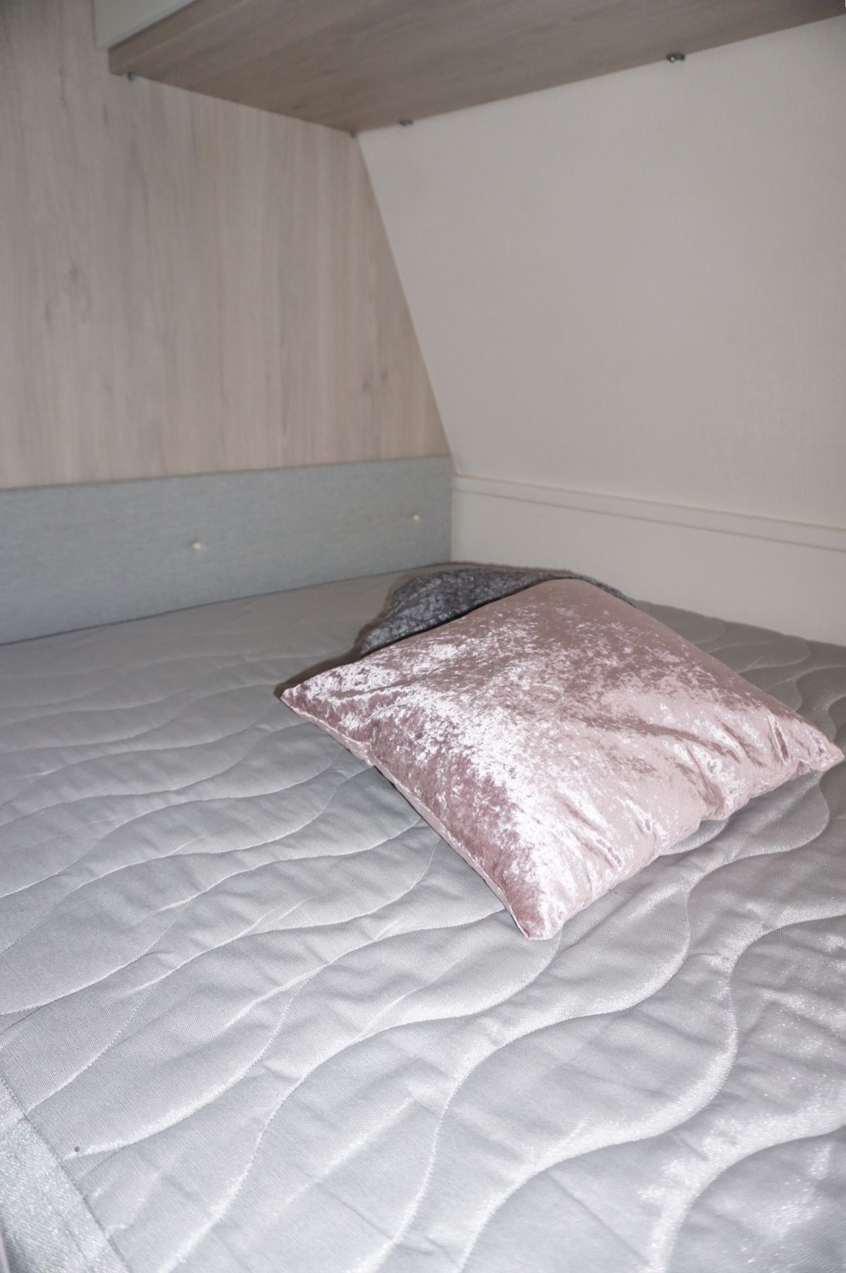 Dwars bed met royale opbergruimte onder het bed, zowel van binnenuit als via het serviceluik aan de buitenzijde toegankelijk.